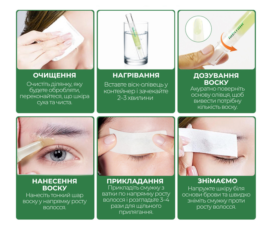 Віск-олівець для брів та обличчя дозволяє легко видаляти небажане волосся навіть у маленьких і чутливих зонах.